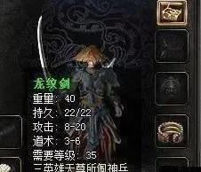 老规矩,它有个等级要求在35级,攻击8-20,道术3-6,龙纹在属性攻击还有道术上都是略高于无极的,还据说龙纹召唤的神兽攻击力高一些,一般这两种武器就分出两种道士的玩法了,偏攻击的都是用龙纹,而道术的用无极,不过龙纹的爆率比无极的高一些,但价格确实比无极高。